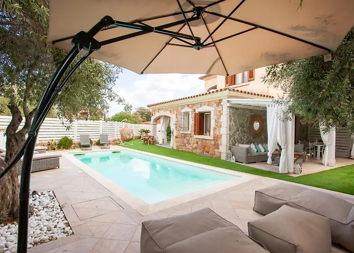 De 1-slaapkamer Villa Coclea Con Piscina beschikt over een zonneterras op de tuin en een dakzwembad. De villa beschikt over gratis priveparkeerplaatsen en ligt op 3 km van Stagno di San Teodoro.